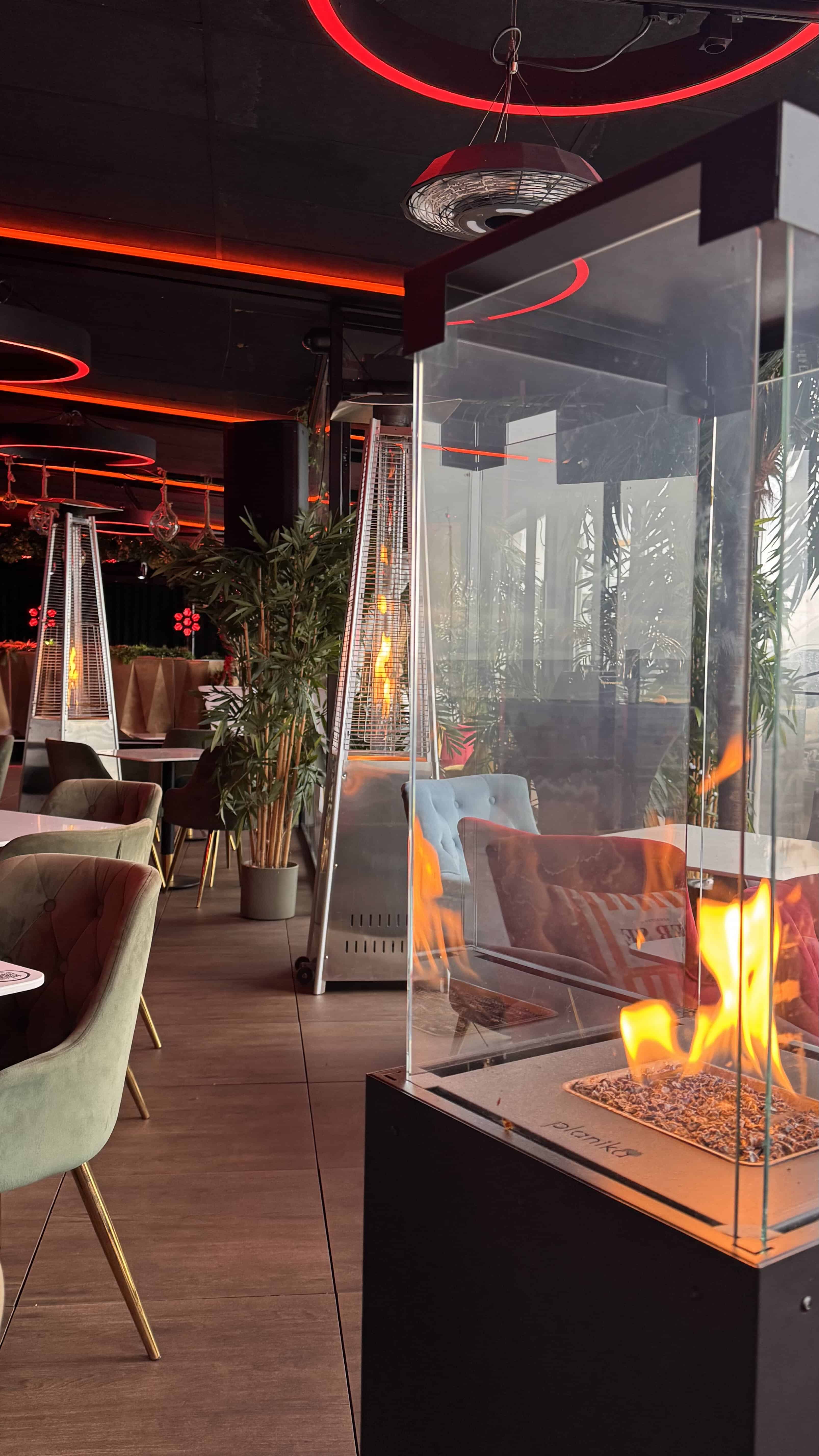 The restaurant features two different spaces – one with a more elegant, formal vibe, and the other resembling a lounge with warm radiant heaters.