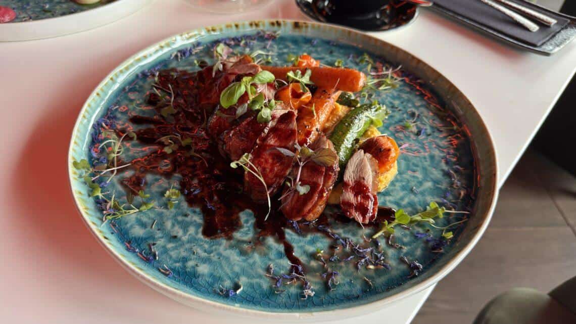 Kergelt suitsutatud pardifilee – maisipüree / grillitud köögiviljad / kirsi-peedikaste