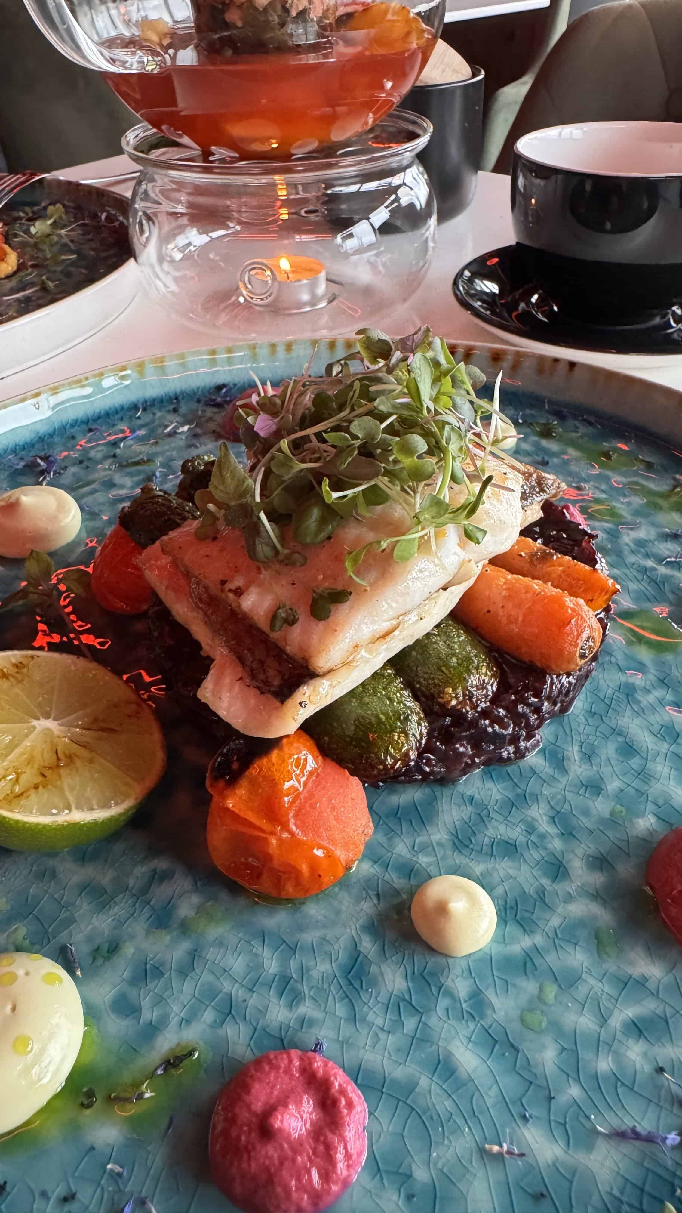 Whitefish fillet – The fish was delicate and had a natural, clean flavor. The texture of the black rice resembled a creamy risotto and made a lovely addition to the dish. The grilled vegetables were absolutely delicious 😋.