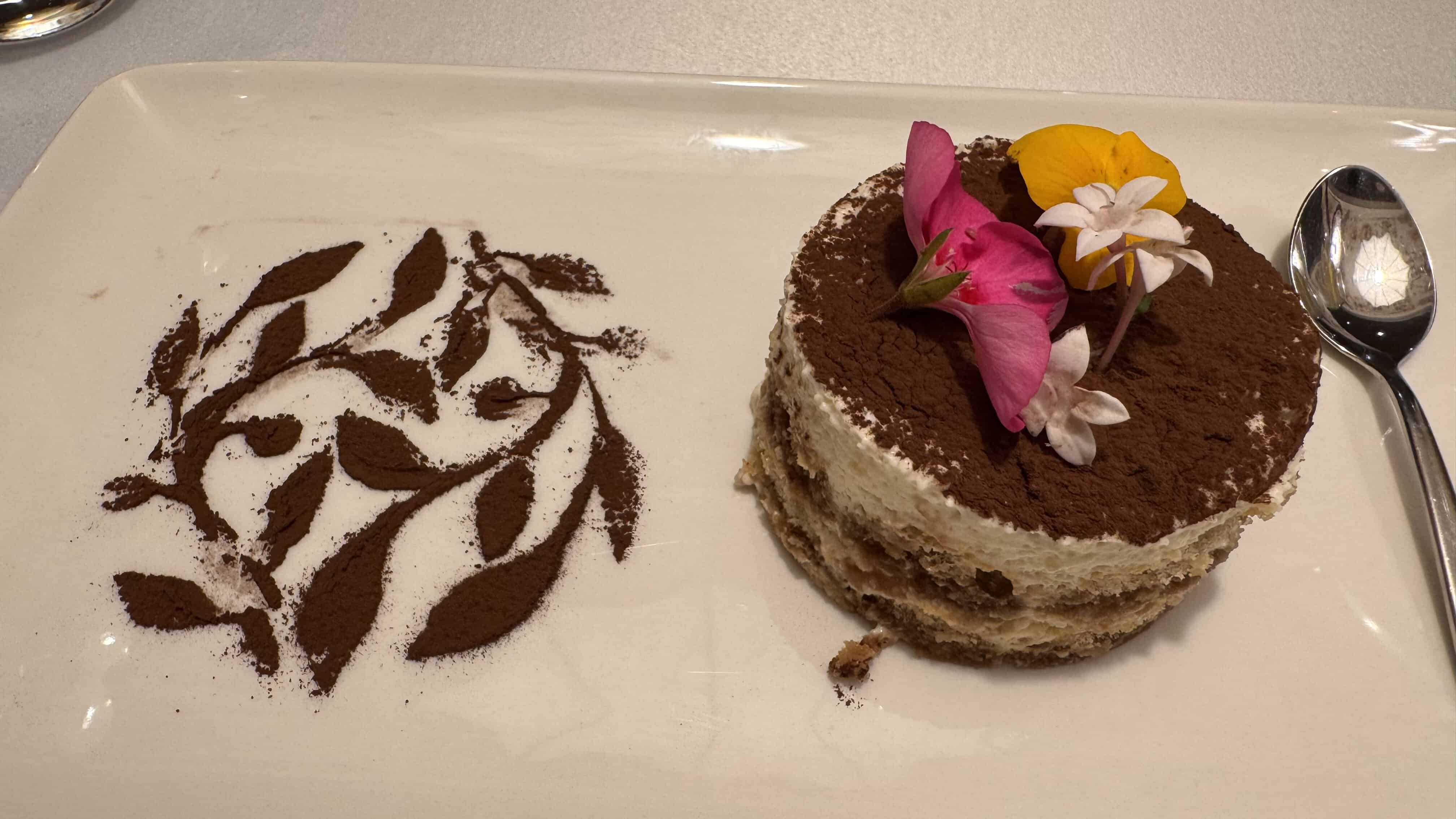Toisena jälkiruokana valitsimme tiramisun. Se oli kuohkea ja mehevä, ja maistui erinomaisesti myös niille, jotka eivät yleensä pidä kahvista. Ehdoton suosikki, jos näiden kahden jälkiruoan välillä pitäisi valita!