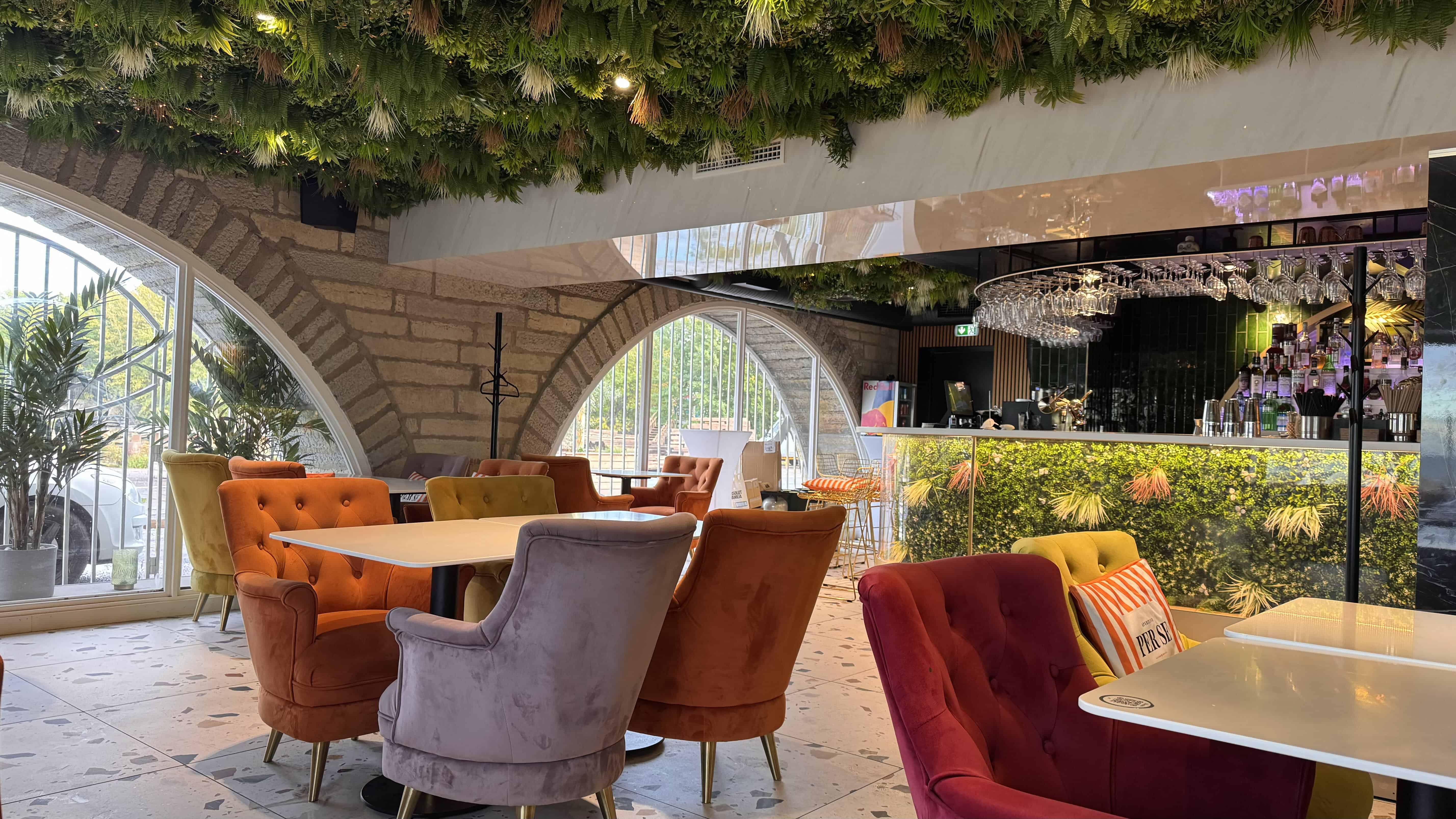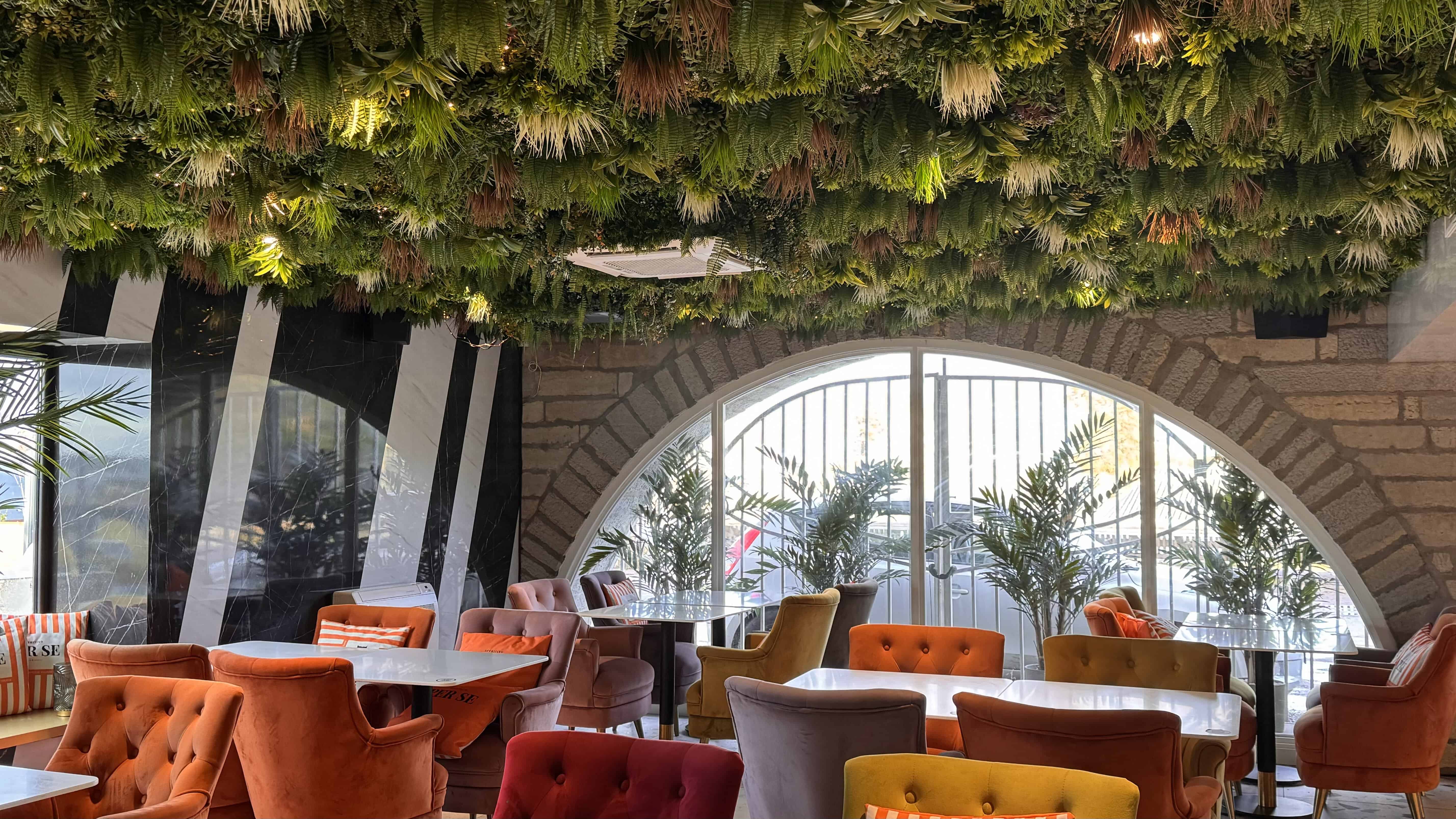 У KAI Resto приятная, расслабляющая атмосфера — с одной стороны, стильный интерьер, а с другой — ненавязчивая простота. Много зелени, простор благодаря большим окнам, из которых открывается потрясающий панорамный вид на море, где можно наблюдать, как корабли приплывают и уплывают.