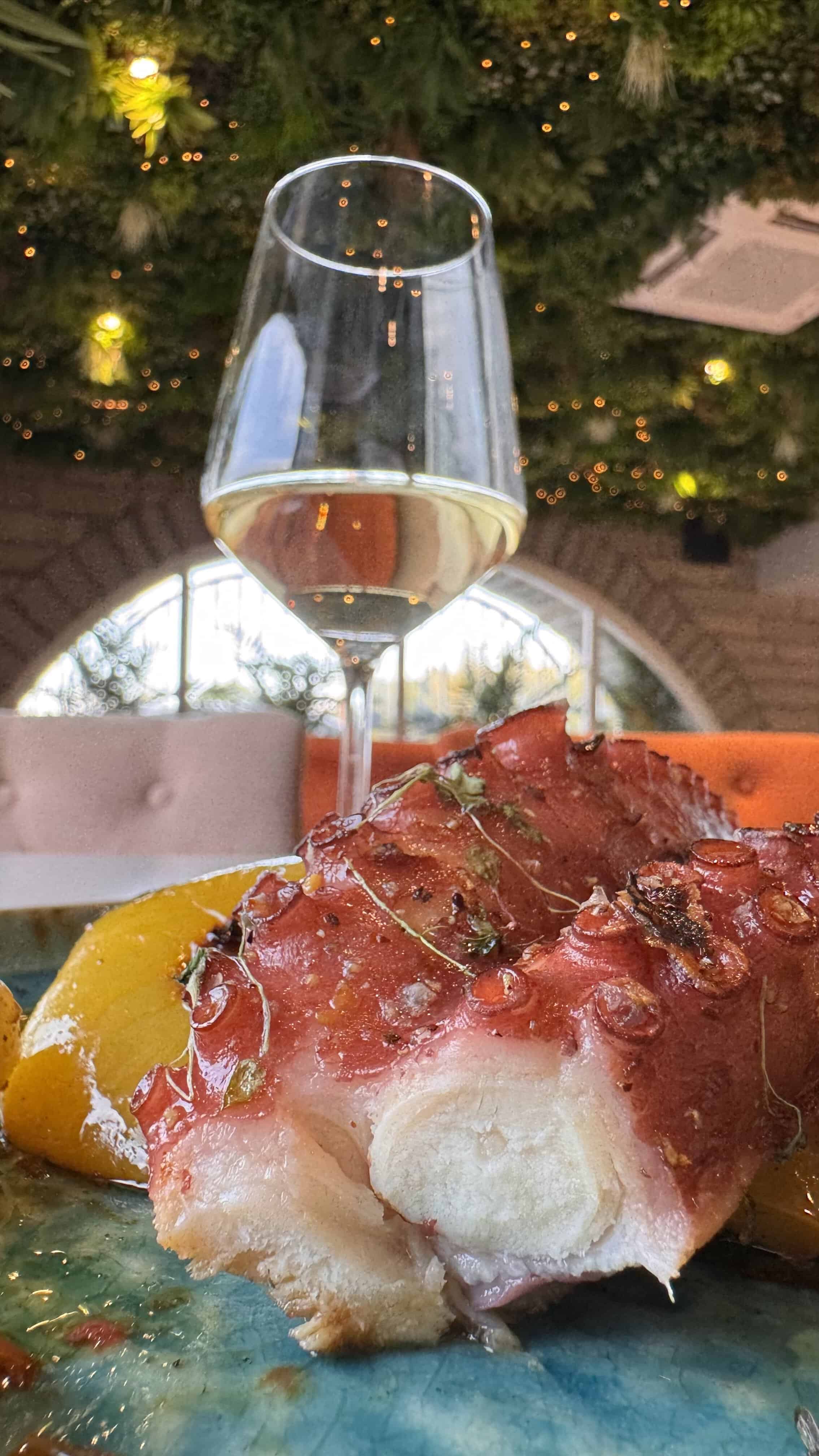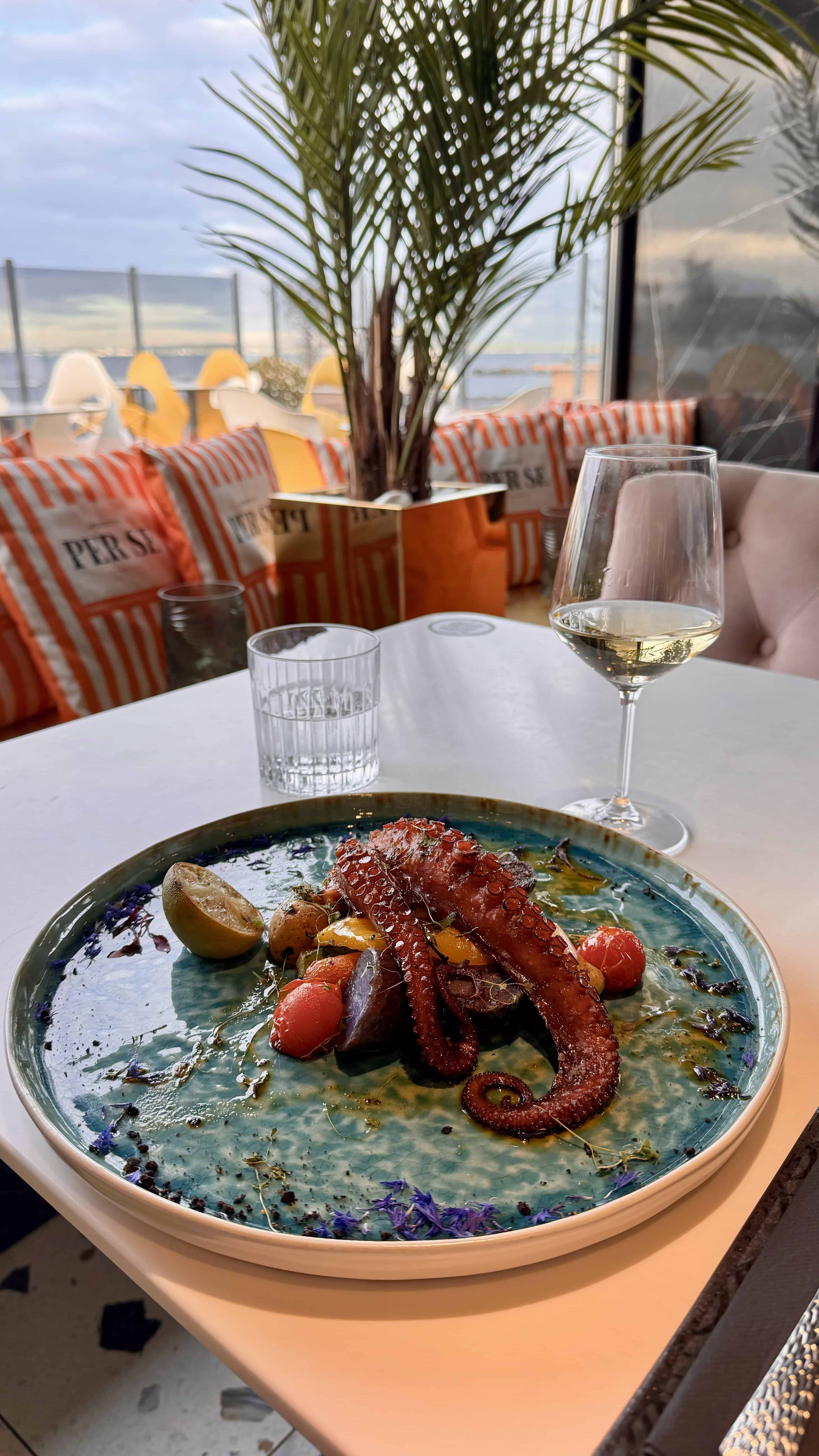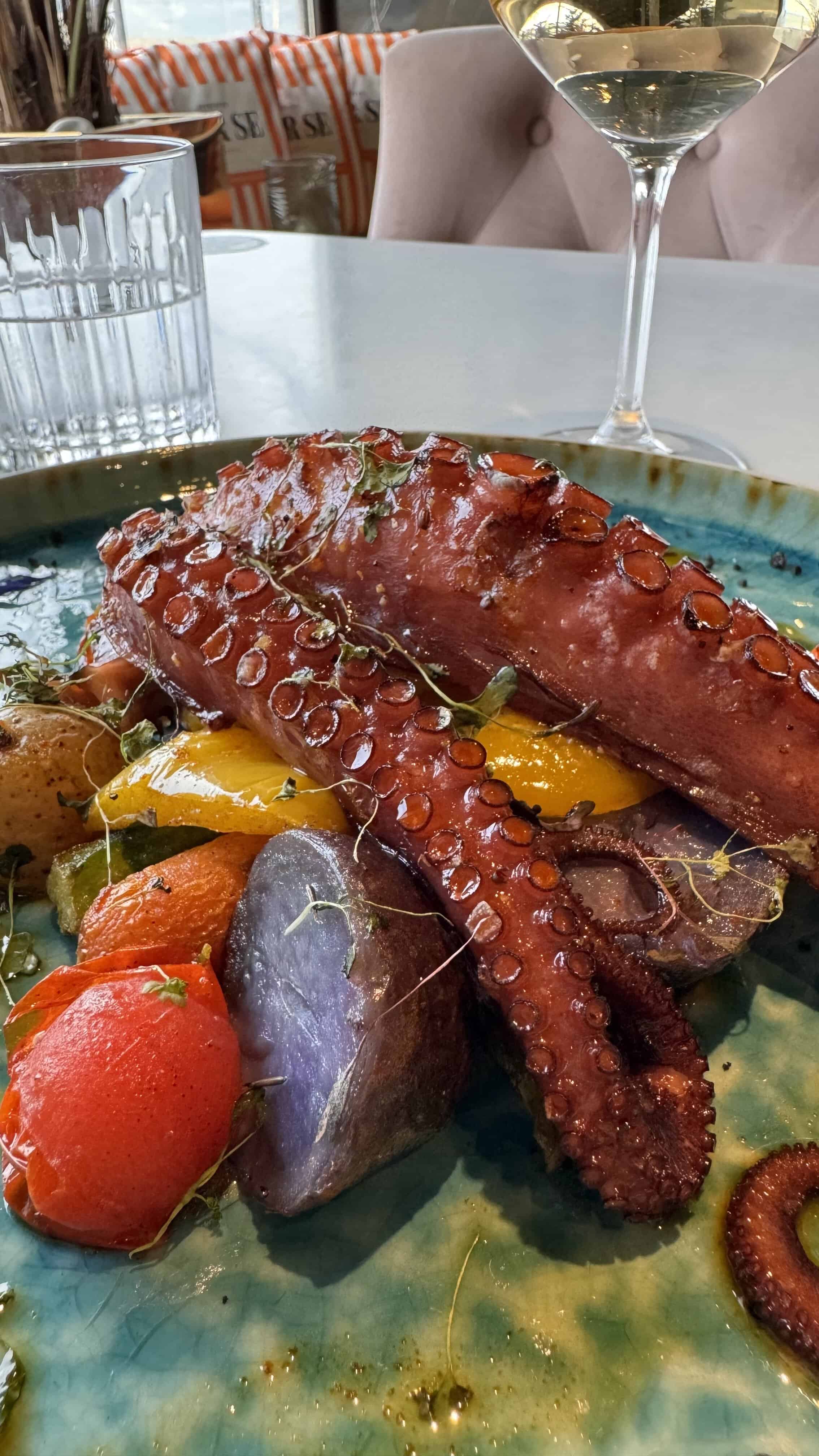 Осьминог – молодой и синий картофель, запечённые овощи, лимонное масло
