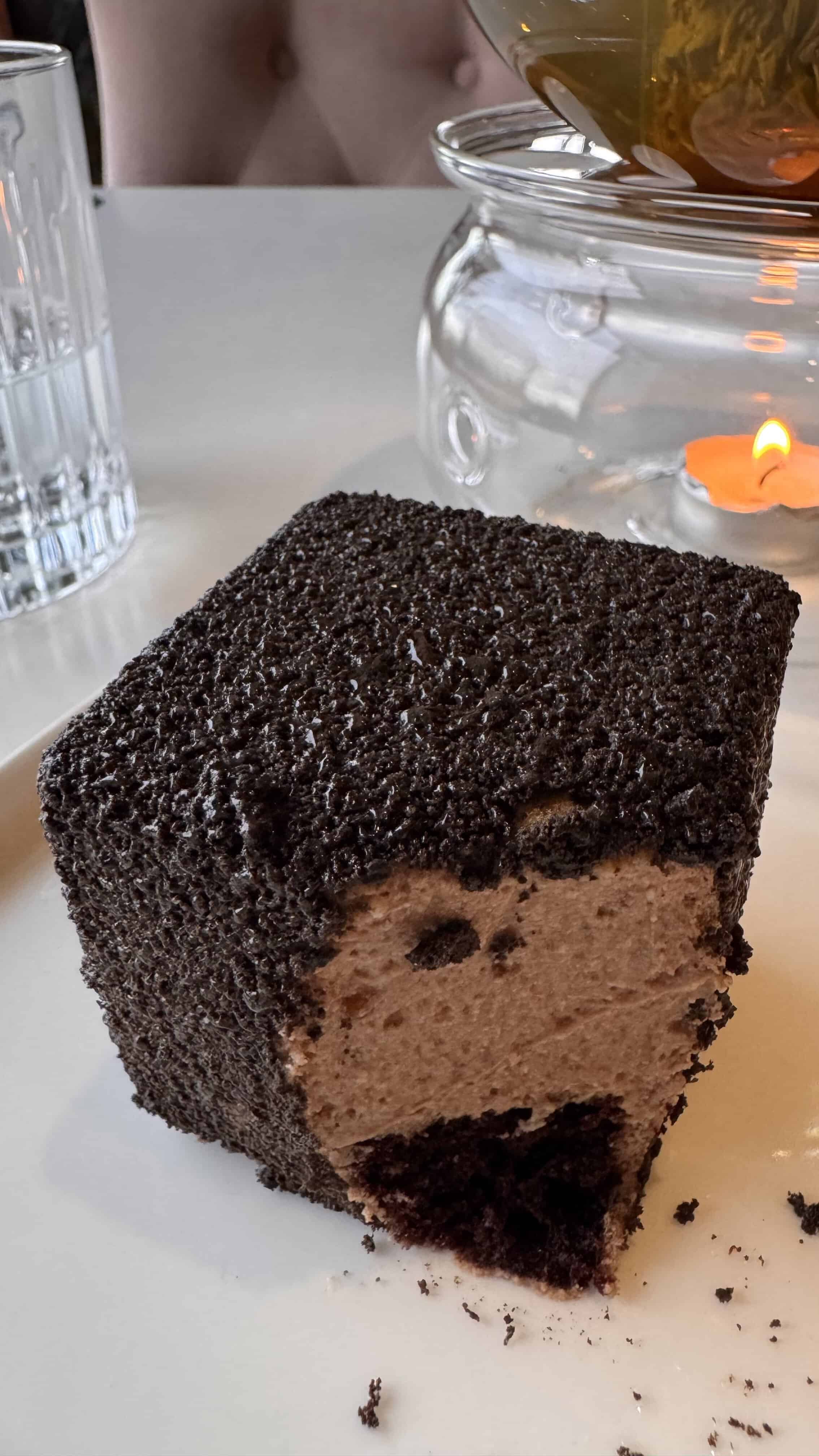 Десерты, включённые в специальное меню FoodLover, пока попробовать не удалось, так как они будут доступны только в рамках кампании. Тем не менее, я попробовал(а) один из их десертов из à la carte – “Must Ruut” (торт с шоколадным бисквитом и шоколадным кремом с ромом), цена 7,9 €. Было нежно-кремово, сладко, и внутри ждал маленький ореховый сюрприз.